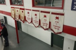 Więc tak w weekend był tam turniej juniorów w wieku 8-10 lat. Były tam drużyny Calgary Flames, Red Deer, Cranbrook, miejscowi juniorzy i jeszcze jakieś dwie drużyny, ale nie zapamiętałem. I co ważne tutaj w Kanadzie każdy z rodziców jedzie z dzieckiem taki kawał drogi, aby zagrało ono mecz. Co ważne tutaj mecz sędziuje jeden sędzia stanowy, drugi to junior i mu pomaga, uczy się. Bardzo dobre rozwiązanie szkoleniowe. Co więcej w tym ogrzewanym pomieszczeniu były trofea i medale. Chciałem zrobić im zdjęcia ale mnie upomniano że nie wolno, więc pozostanie wam tylko fotka proporczyków. Więcej nie ma co się rozpisywać podrzucam fotki: