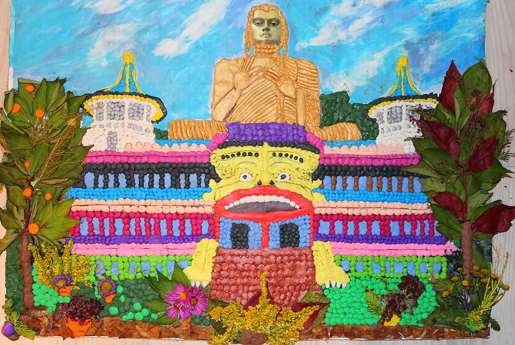Sri Lanka - Złota Świątynia Dambulla - praca jest wykonana na tekturze z kulek plasteliny oraz żywych kwiatów i liści :)