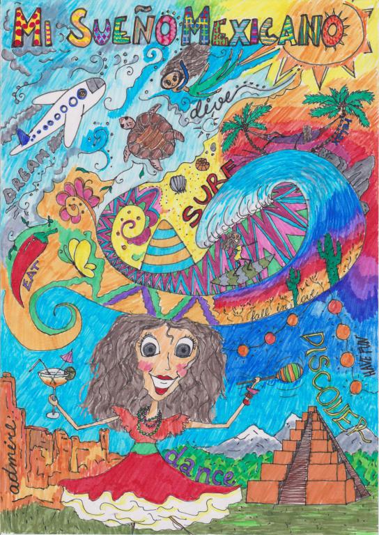 to, co wypłynęło prosto z mojego serca na hasło "Meksyk" :) praca wykonana piórem i flamastrami.